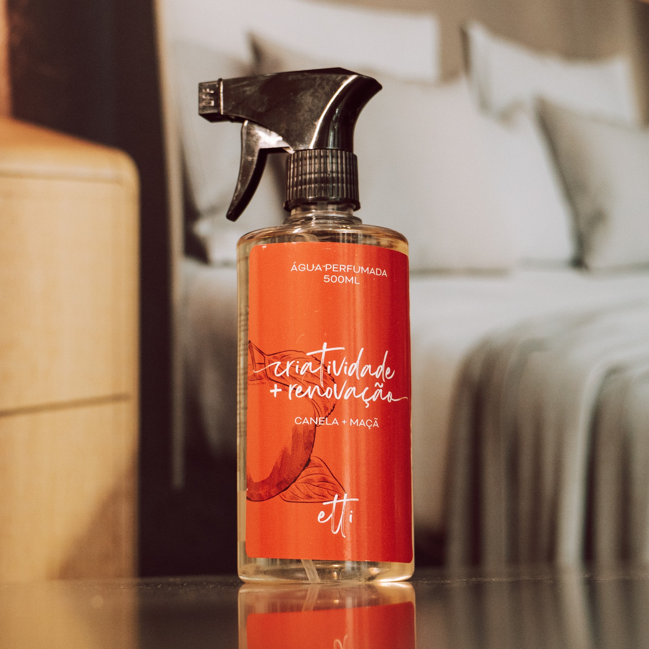 Água de Lençol de 500ml com fragrância exclusiva de maçã e canela, formulada para oferecer alta projeção no ambiente. Fabricada com composição premium, vegana e cruelty free, e livre de substâncias tóxicas, essa fragrância traz criatividade e renovação, ideal para lençóis, sofás, tapetes e cortinas.