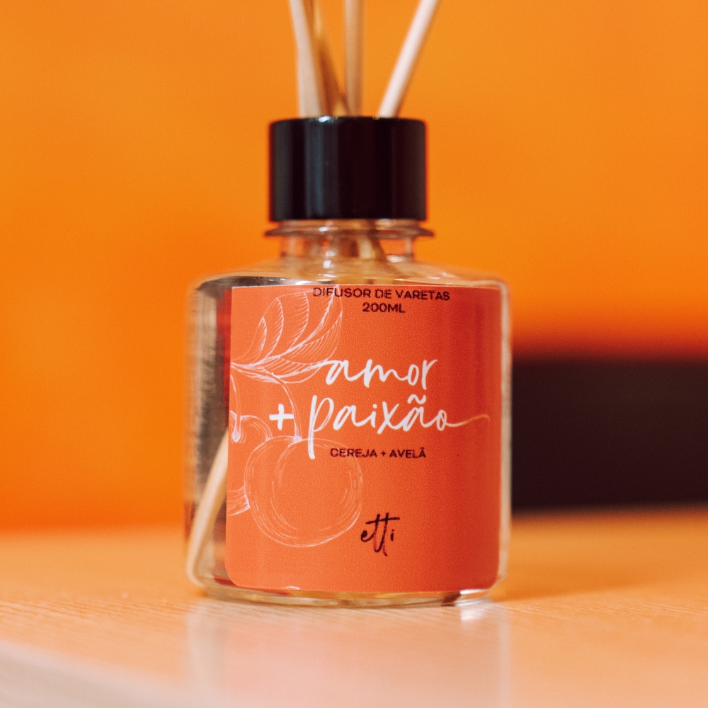 Difusor de varetas de 200ml com fragrância exclusiva de cereja e avelã. Criado para oferecer uma perfumação contínua e duradoura, ele preenche o ambiente com um aroma doce e envolvente, perfeito para momentos de intimidade e aconchego.