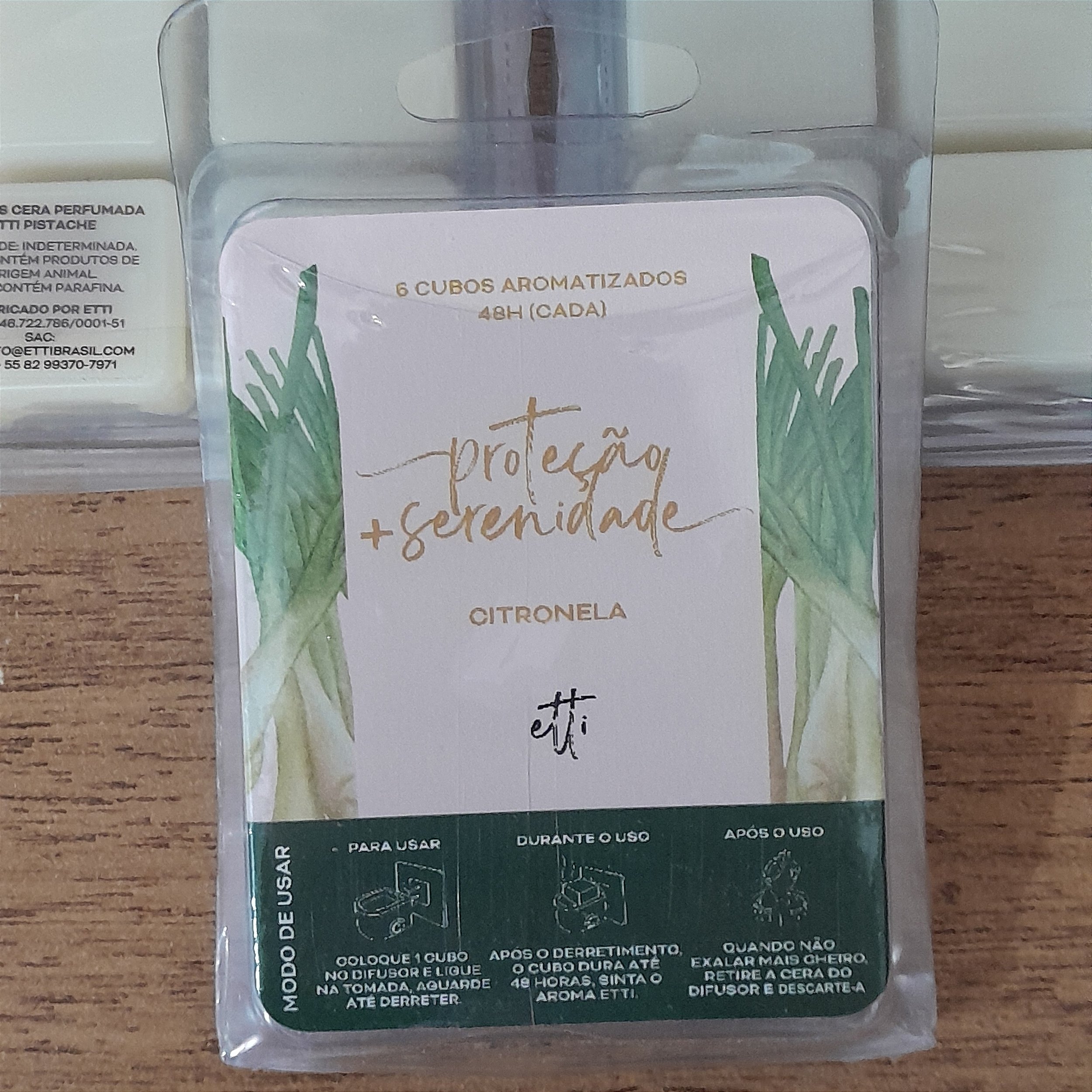 Cubo Aromático com fragrância exclusiva de citronela. Ideal para derreter e liberar um aroma refrescante que ajuda a criar um ambiente protegido e sereno.