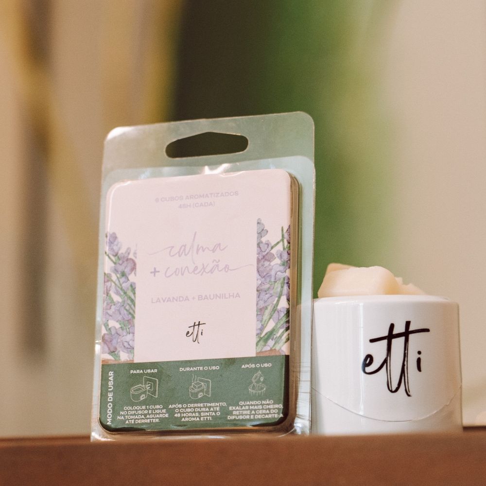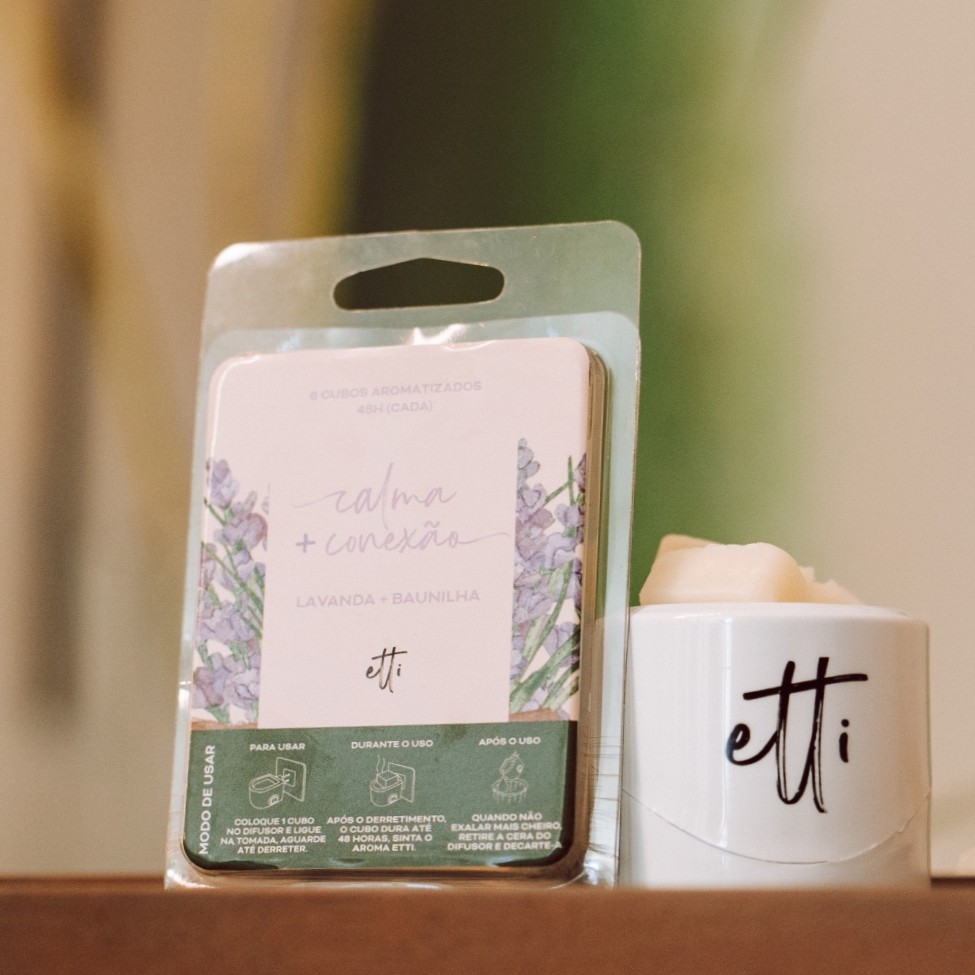 Cubo Aromático com fragrância exclusiva de lavanda e baunilha. Criado para derreter suavemente e liberar um aroma calmante e envolvente, criando uma atmosfera de tranquilidade e harmonia.
